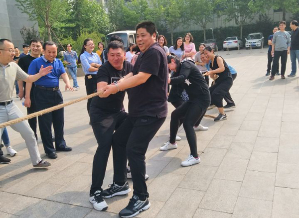本次趣味運(yùn)動(dòng)會(huì)分為團(tuán)體賽和個(gè)人賽。團(tuán)體賽包含拔河、單足跳接力、風(fēng)采一條龍、坦克大戰(zhàn)和業(yè)績(jī)翻番五項(xiàng)比賽;個(gè)人賽包含踢毽子、跳繩、摸石頭過河、青蛙跳水和夾玻璃球五項(xiàng)比賽。參加團(tuán)體賽和個(gè)人賽的選手,均要按順序完成五項(xiàng)比賽,最終累加得分獲得比賽名次。經(jīng)過激烈的角逐,建設(shè)集團(tuán)第三代表隊(duì)榮獲團(tuán)體比賽第一名;建設(shè)集團(tuán)唐磊磊在個(gè)人競(jìng)技賽中脫穎而出獲得冠軍,建設(shè)集團(tuán)黃雪獲得第二名,房產(chǎn)集團(tuán)張倩倩、建設(shè)集團(tuán)張超并列第三名。