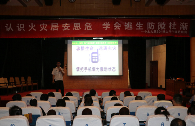 5月25日上午,中太大廈2018年度上半年消防培訓在二樓報告廳舉行,邀請中國安全健康教育網(wǎng)河北站高級宣教員程軍老師,為大家?guī)硪粓鼍实南乐R講座。