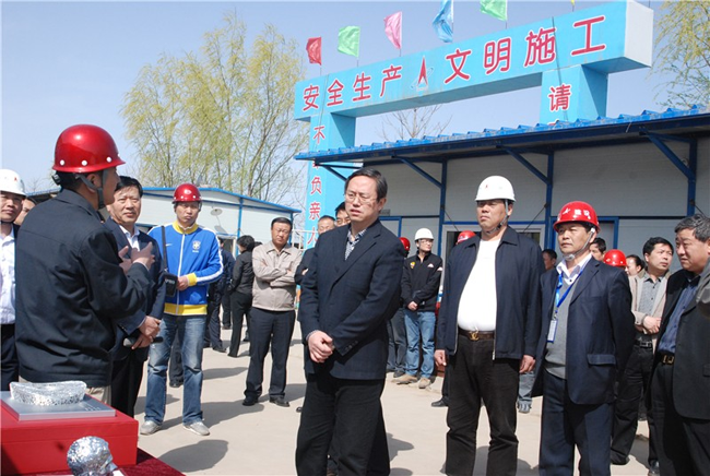 集團(tuán)總裁張明禮(前右3)陪同趙世洪書(shū)記(前右4)在現(xiàn)場(chǎng)考察