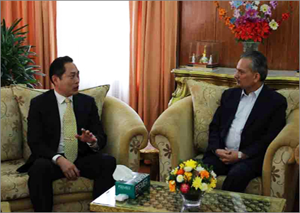 馬功云局長(左)拜訪尼泊爾總理,介紹中太建設集團發展情況。