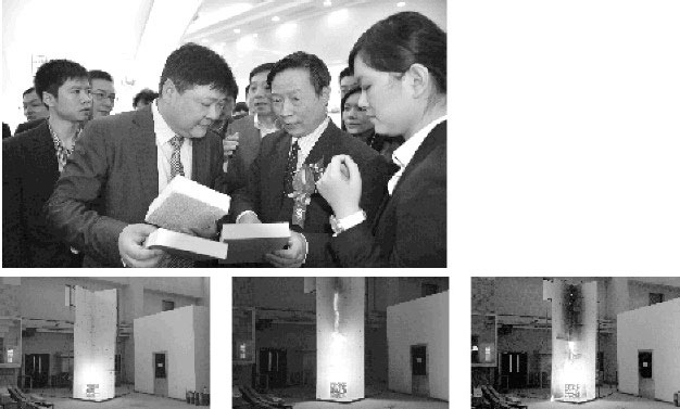 上圖:上海雅達(dá)特種涂料有限公司董事長顧衛(wèi)星(前左)在京向住建部領(lǐng)導(dǎo)和專家介紹創(chuàng)新產(chǎn)品聚合聚苯板的性能和特點(diǎn)