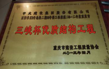 近日,由集團公司第三工程局承建的重慶市中海國際社區項目2號地二期總包工程(IV)標段,榮獲重慶市建設工程質量協會二0一二年度“三峽杯優質結構工程獎”。項目經理張國棟、項目技術負責人曹傳皓分別獲得個人獎項。