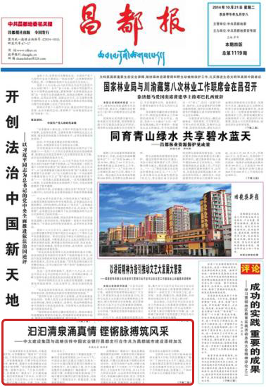 2014年10月21日《昌都報》頭版報道了中太建設集團與中國農業銀行共同為昌都城市建設添磚加瓦