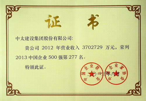 中國(guó)企業(yè)500強(qiáng)證書